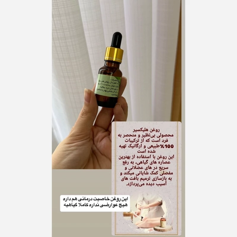 روغن هلكسیر به عنوان یک محصول درمانی منحصر به فرد با اثر گذاری سریع عمیق خود شناخته میشود.